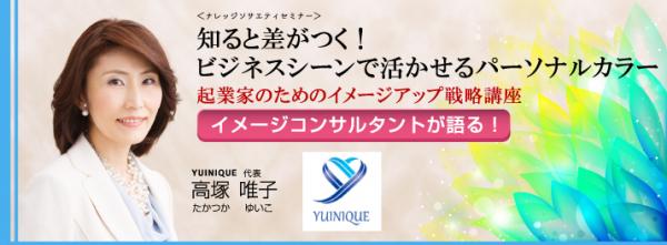 2014年10月23日(木)、イメージコンサルタントのYUINIQUE 代表 高塚唯子(たかつかゆいこ)氏をスピーカーに招き、セミナーを開催します。