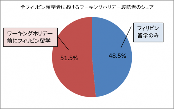実際に、当社の全フィリピン留学渡航者の約半数がワーキングホリデー渡航前の英語学習の場としてフィリピン留学を活用していることからも、フィリピン留学とワーキングホリデーを組み合わせた渡航プランは、英語力向上と現地での就労において相乗効果が見込めることを示しています。