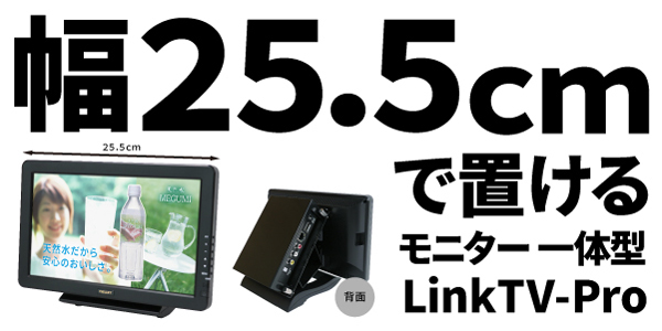 本製品は、YouTubeを利用して簡易ネットワーク更新の出来るハイビジョンプレーヤーLinkTV-Proを、オリジナルの専用金具を使って10.1型高画質モニターの背面に固定。