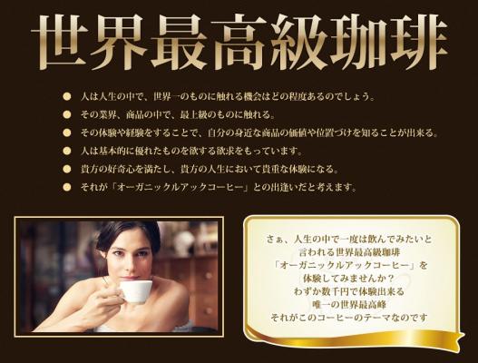 世界一高級(価格が高い)コーヒーとして有名な「コピ・ルアク」の最高級ブランドが「オーガニックルアックコーヒー」です。この度全国展開に伴い、販売代理店を限定50社募集します。
