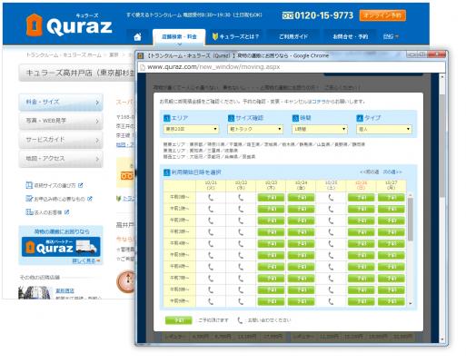 トランクルーム・キュラーズを所有・運営する株式会社キュラーズ(本社:東京都品川区大崎、資本金4億5千万円)は、2014年10月トランクルーム利用時に便利な、荷物の運搬手配をリアルタイムでオンライン予約することが出来る新機能をキュラーズホームページ内に追加いたしました。
