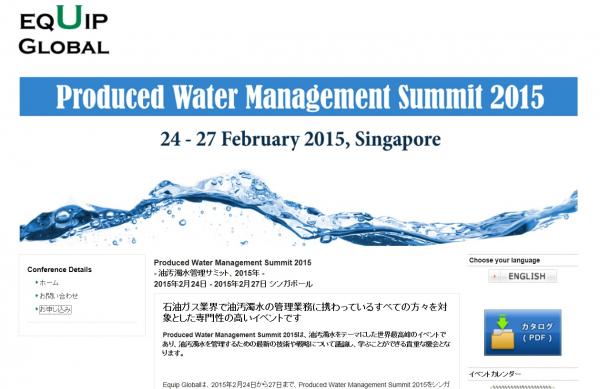 会議:「Produced Water Management Summit 2015-油汚濁水管理サミット 2015年」