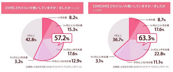 10代と20代30代の片想い期間比較、10代の方が片想い期間長く