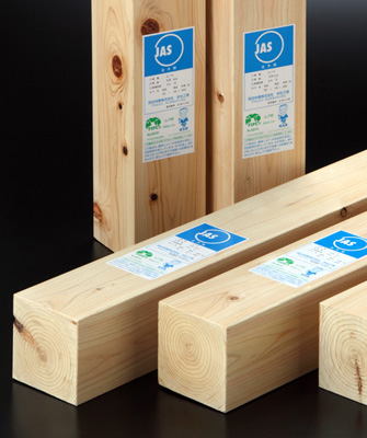 ・JASで認定されている木材強度、ヤング係数E50以上の基準を上回るE110以上の高い強度を有する