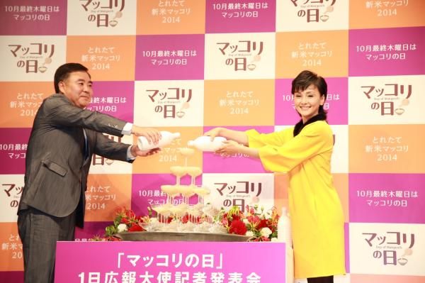 新米の美味しい季節、韓国では10月最終木曜日「マッコリの日」に新米マッコリを楽しむ習慣がありますが、この「マッコリの日」を日本の皆様にも知って頂き、もっと身近に楽しんで頂きたいとの思いから、この度女優の南果歩さんを「マッコリの日 1日広報大使」に任命。 当日は、シャンパンタワーならぬ、マッコリタワーが登場し会場を沸かせました。また美容や健康の為に日頃よりマッコリを愛飲されているという、南さんの透き通るような美肌をイメージして、ビタミンCとクエン酸が豊富な柚子茶をジンジャーエールマッコリで割ったビューティカクテル「スノービューティ」が登場。こらからの季節、ご家庭でも新米マッコリやマッコリカクテルを気軽にお楽しみ頂ければと思います。