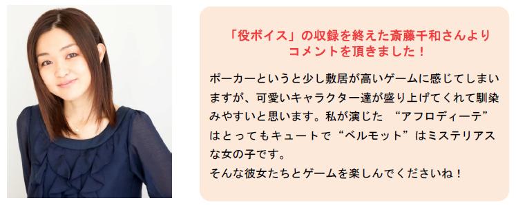 本日より、バトル中に役を揃えた際に発せられる 「役ボイス」に、人気声優・斎藤千和さん(『魔法