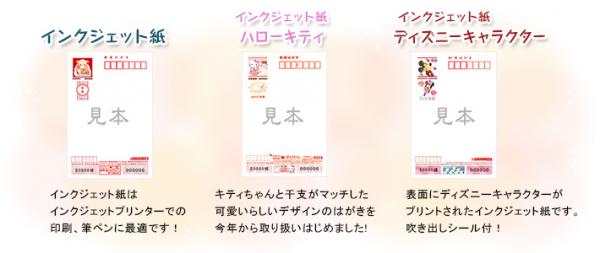 お好きなデザインを印刷する方には無地(インクジェット・普通)、また、可愛いディズニーキャラクターやハローキティの年賀はがきもご用意しております。