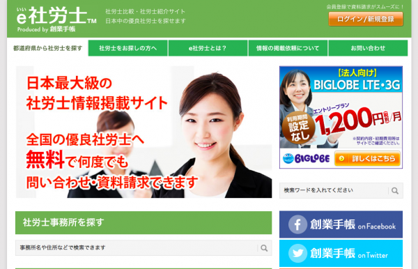 e社労士は、日本で毎月登記されている約10,000社の法人の創業者すべてに、創業直後に必ず配布される『創業手帳』(http://sogyotecho.jp/)を出版しているビズシード株式会社が運営しています。