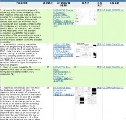 ●審査経過情報を含む米国特許情報の一覧表示画面(サンプル)