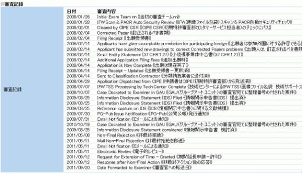■米国特許の検索結果から簡単に最新の審査記録を確認
