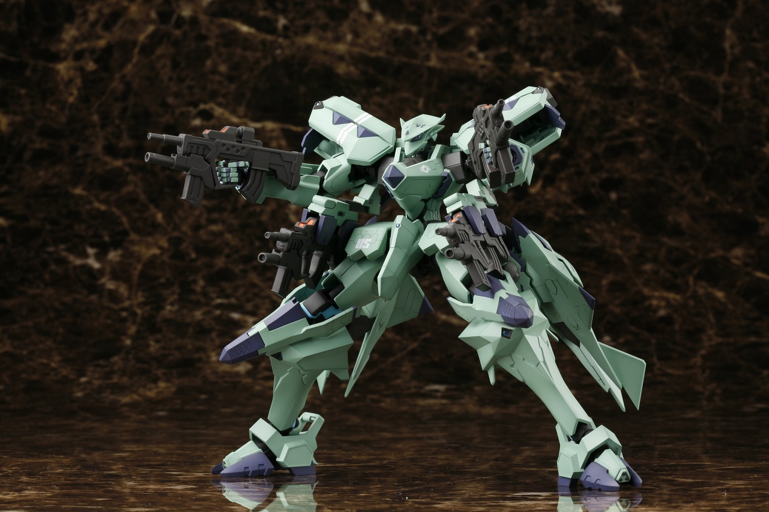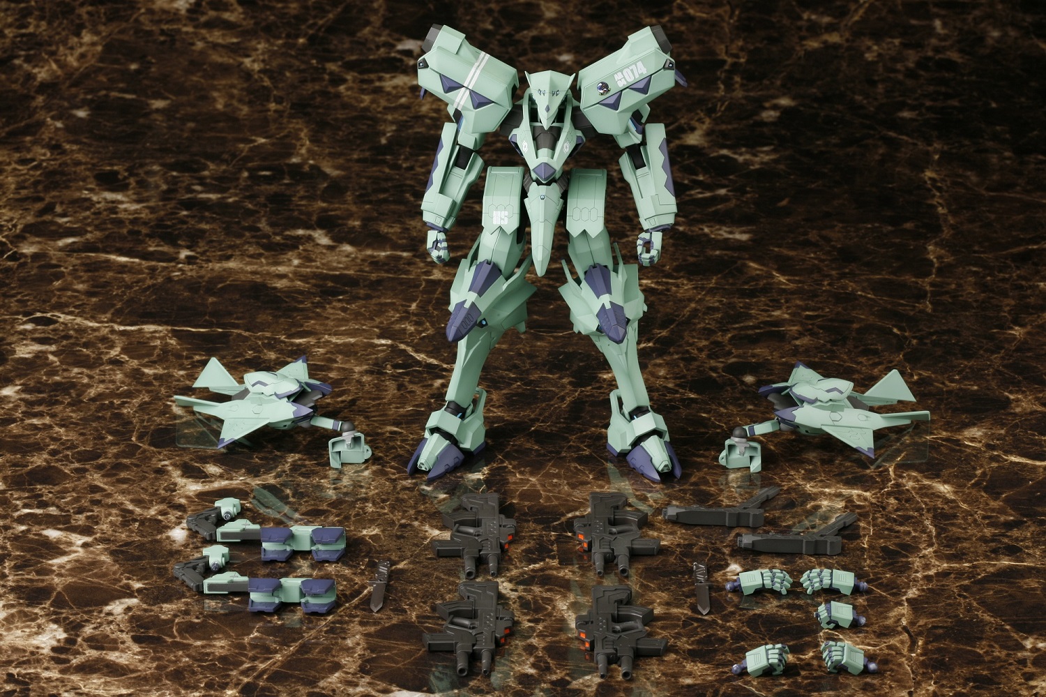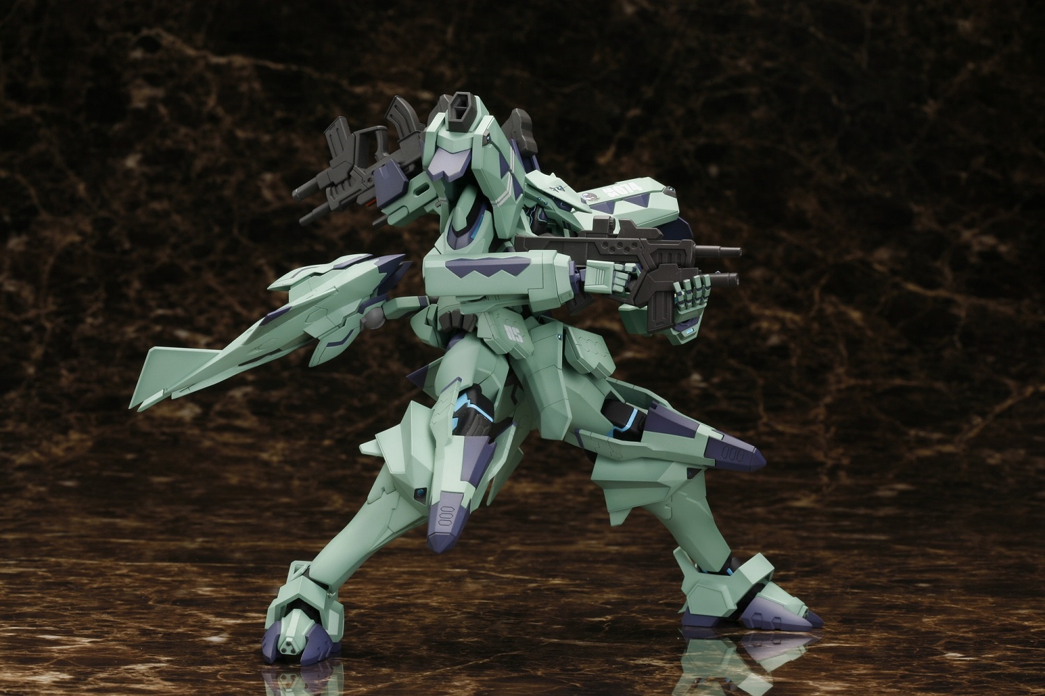発売済みの「ラプター先行量産型」に比べて小型化した頭部フィンを、新規造形にて設定通りに再現しました。成形色も先行量産型のカラーから全規模量産型のカラーへ刷新、更にパーソナルマークなどの新規デカールが付属します。また、ガンマウントと膝部ナイフシースの展開はそれぞれ差し替えにより再現が可能となっています。AMWS-21(突撃砲)が4門付属しておりフル展開状態を再現することも可能です。別売の「フライングベース・ネオ」にも対応しており、戦術機特有の跳躍ポーズでの展示もお楽しみいただけます。