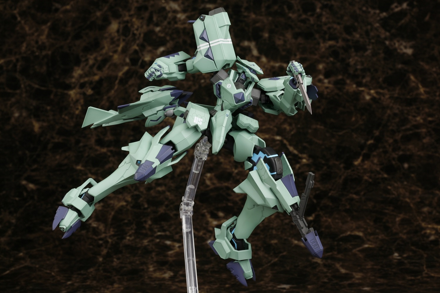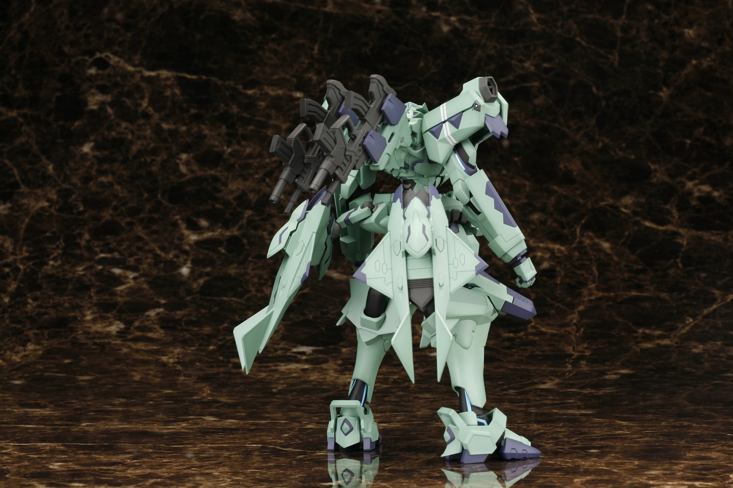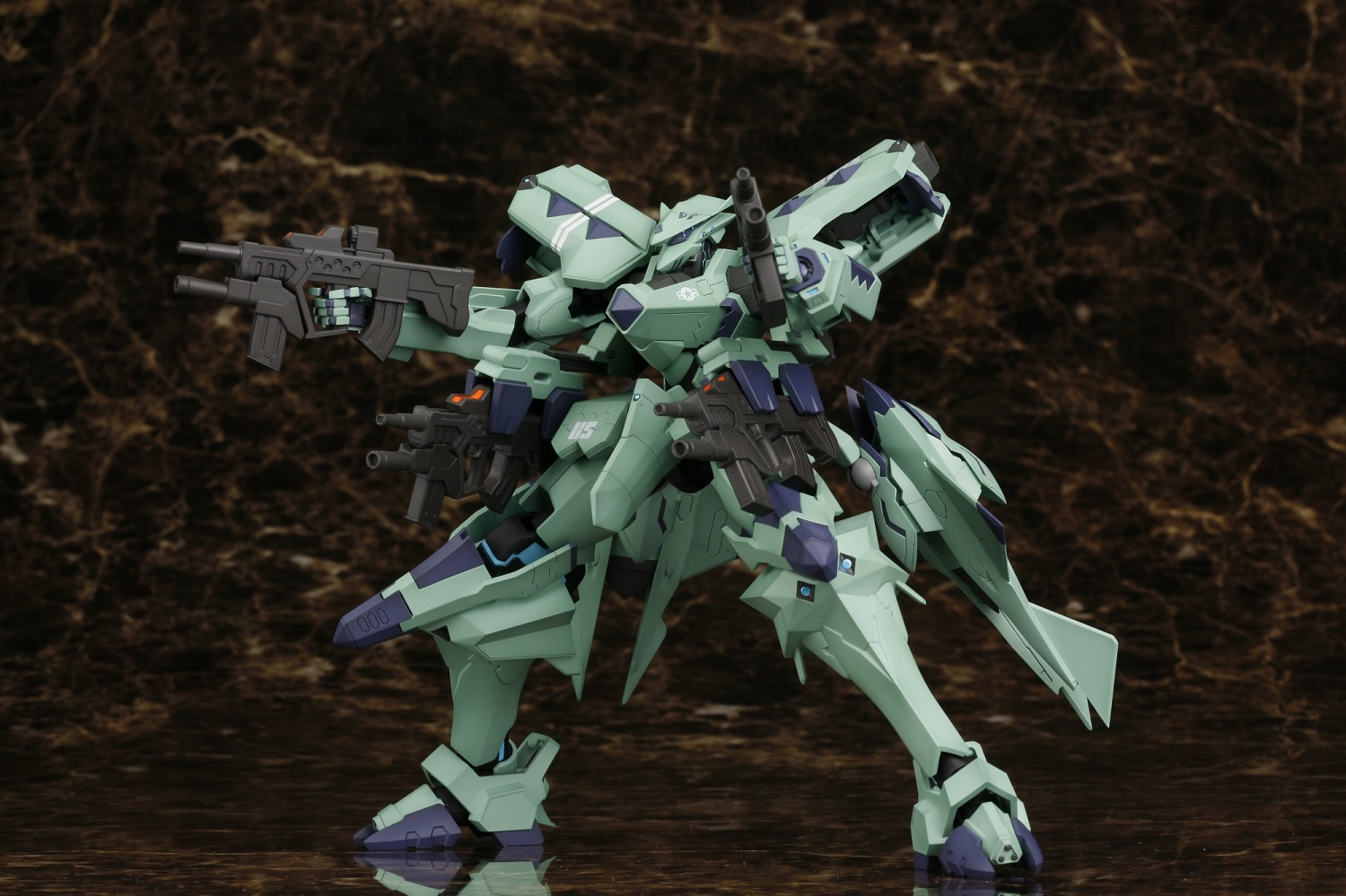 発売済みの「ラプター先行量産型」に比べて小型化した頭部フィンを、新規造形にて設定通りに再現しました。成形色も先行量産型のカラーから全規模量産型のカラーへ刷新、更にパーソナルマークなどの新規デカールが付属します。また、ガンマウントと膝部ナイフシースの展開はそれぞれ差し替えにより再現が可能となっています。AMWS-21(突撃砲)が4門付属しておりフル展開状態を再現することも可能です。別売の「フライングベース・ネオ」にも対応しており、戦術機特有の跳躍ポーズでの展示もお楽しみいただけます。
