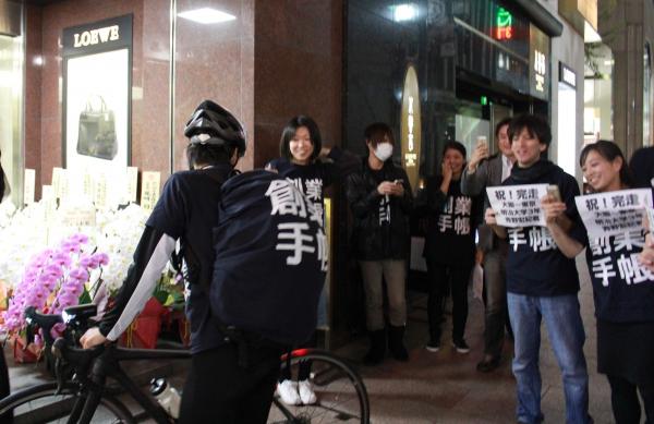 10月30日に大阪商工会議所で激励を受け自転車でスタート。京都・大津・名古屋・浜松・静岡などを自転車で回り、最終日の11月4日は朝、小田原を出発、沿道の各シェアオフィス・ベンチャー企業を訪問し、声援・支援を受けながら東京へ。最後は国の創業支援を行っている中小機構や経済産業省などを訪問し激励を受け、11月4日18時20分に銀座のビズシード本社に到着し集まった支援者の祝福を受けた。