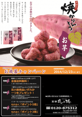 菓寮 花小路は2014年11月1日(土)より通信販売限定【2014年お歳暮キャンペーン】をスタート致しました。
