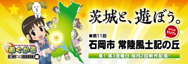 茨城県の観光地・名物にスポットをあてた茨城県産アニメーション『あぐかるPLAY WITH IBARAKI編』の新作第11が11月7日(金)よりニコニコ動画、YouTubeで公開となりました。アニメは約1ヶ月間無料で視聴できます。