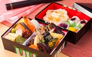 「秋彩堪能」をコンセプトに旬の食材を使い、素材の味わいを大切にしたやさしい味付けです。女性に嬉しいプチデザートも付いており、ホテルメイドならではの贅沢な秋のお弁当です。