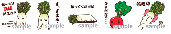 和の心、わびさびの心がつまった大根の世界を表現した「あおくび大根」のスタンプデコメ。