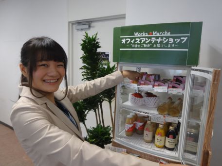 「働きがいのある会社」6年連続ベスト4入りした株式会社ワークスアプリケーションズ(本社:東京都港区、代表取締役最高経営責任者:牧野正幸)は、社員の健康改善を目的としたタスクフォース「ワークスヘルシープロジェクト」の一環として、オフィス内冷蔵庫で野菜や果物を販売するアンテナショップ『ワークスマルシェ』を2014年11月12日にオープンいたしました。
