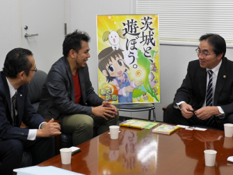 株式会社メディクリエ(茨城県つくば市)は茨城県の委託事業により、茨城県の魅力をPRする茨城県産アニメーション『あぐかる』の新シリーズ『あぐかるPLAY WITH IBARAKI編』を制作中。11月11日(火)、『あぐかる』の監督・芦名みのる氏が石岡市役所を訪れ、11月7日(金)に公開となった「第11話石岡市常陸風土記の丘」のDVDを今泉文彦石岡市長に贈呈、完成を報告した。