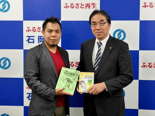 株式会社メディクリエ(茨城県つくば市)は茨城県の委託事業により、茨城県の魅力をPRする茨城県産アニメーション『あぐかる』の新シリーズ『あぐかるPLAY WITH IBARAKI編』を制作中。11月11日(火)、『あぐかる』の監督・芦名みのる氏が石岡市役所を訪れ、11月7日(金)に公開となった「第11話石岡市常陸風土記の丘」のDVDを今泉文彦石岡市長に贈呈、完成を報告した。