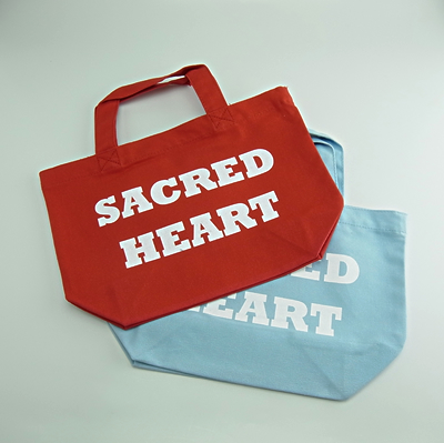 1800年創立の「聖心会(フランス)」を母体とする港区の女子専門学校が、学校説明会や体験授業(保育科)の際に配布したエコバッグ。お弁当入れとしての利用を想定し選んだ素材に、普段使いもできるよう配慮したシンプルなシンボル図案を印刷されました。