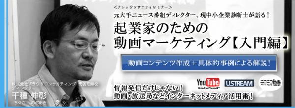 起業家向け会員制シェアオフィス・コワーキングスペース「KSフロア」を運営する株式会社ナレッジソサエティ(本社:東京都千代田区、取締役社長:久田敦史 http://www.k-society.com)は、「起業家が起業家を支援する」というコンセプトのもと、2014年11月27日(木)に「起業家のための動画マーケティング【入門編】」セミナーを開催します。
