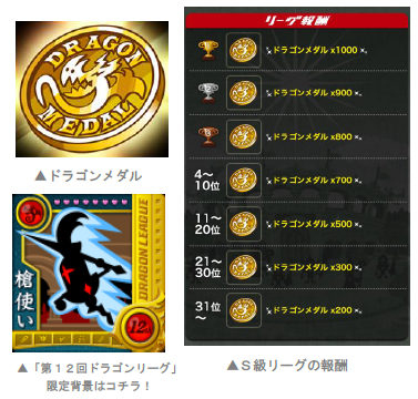 「ドラゴンリーグ」終了後のランキングによって、報酬「ドラゴンメダル」を獲得