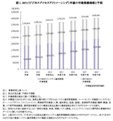 2. 調査対象:SIer、コールセンター会社、印刷会社、人材派遣会社、コンサルティング会社などのBPO市場参入事業者、人事系、経理系、医療系、オフショア系、購買・調達系、ソーシャルメディア系などのBPO事業者等
