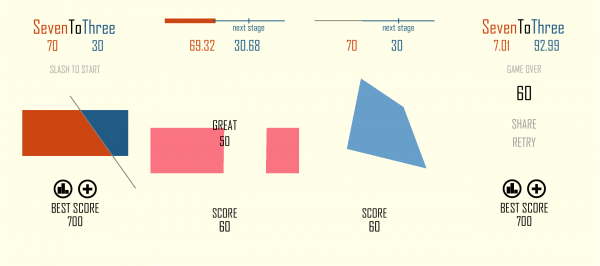 七三分けが正確に出来るように、7:3に分ける感覚を養える指1本で出来るゲームです。