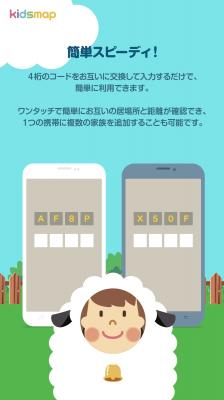 『Kidsmap』は親子の様々な「はぐれるシーン」において、位置情報を確認し合えることで「つながる安心」をサポートするアプリです。最初に4ケタの番号で端末同士を連結させるだけで、いつでも簡単にお互いの存在を地図上で確認することができます。