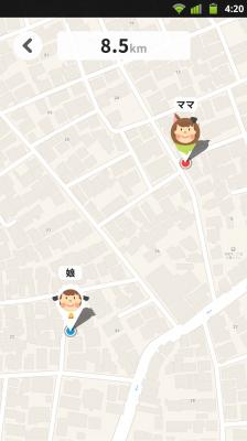 従来の親子用位置情報サービスは、親御さま側からお子さまの場所を探す一方向のサービスが主流でしたが、『Kidsmap』はお子さま自身が自分の意思で相手の位置を検索することができるため、迷子になった時、塾の迎えが遅い時などに使用していただくと、リアルタイムで地図上に検索したい人が浮かび上がるため、不安を安心に変えることができます。また、お子さまが使用することを意識して、シンプルな機能でかわいいデザインになっております。