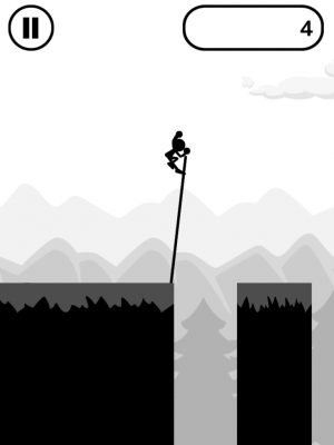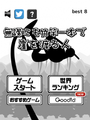 「無謀にも竹竿一本で崖を渡る人」は子供から大人まで誰でも簡単に楽しめるシンプルなiPhone、Android用ミニゲームです。