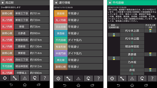 「運行メトロインフォ」は、リアルタイム運行状況の確認、周辺駅検索、乗り継ぎ検索が出来るAndroid版アプリケーションです。