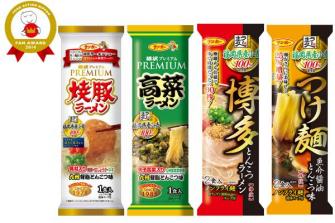 麺に福岡県産小麦「ラー麦」を100%使用した、「棒状プレミアム焼豚ラーメン」、「棒状プレミアム高菜ラーメン」、「棒状博多とんこつラーメン福岡県産小麦使用」、「棒状つけ麺魚介醤油とんこつ味福岡県産小麦使用」、通販限定商品「ザ・三宝ラーメン」がフード・アクション・ニッポン アワード2014優秀賞製品となっておりますのでご報告いたします。