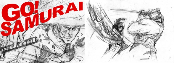 痛快チャンバラアニメーション「GO! SAMURAI」。これは、伝説の日本人アニメーター・木村圭市郎76歳が挑む、チャンバラシーンのみで展開されるアクション&スピード感満載のオリジナル短編作品です。 一人の侍が次々と襲いかかる百人の敵と闘う姿を、木村圭市郎の特徴である荒々しい素描、ダイナミックなアクション、奇抜なカメラワークでえがく、観て、体感する、新感覚アニメーションです。全フレームを木村によるモノクロの手描きドローイングのみで構成。作品時間約5分、作画枚数約2000枚となります。なお、アニメの完成は2015年4月を予定しております。