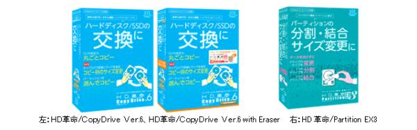 株式会社 アーク情報システム(本社 東京都千代田区、代表取締役社長 碇 邦一)は、パソコンの環境(システムやデータなどすべて)を別のハードディスクやSSDにコピーするハードディスク/SSD丸ごとコピーソフトの最新版「HD革命/CopyDrive Ver.6」と、ハードディスクのパーティション操作・変更をより手軽に安心して行うことができる「HD革命/Partition EX3」のWindows対応ソフト2製品を12月12日(金)より全国で発売します。