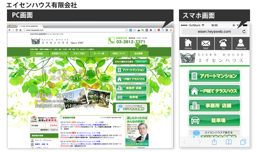 エイセンハウス有限会社様は東京都文京区茗荷谷、後楽園エリアを中心に賃貸・売買物件を扱う創業27年目を迎える老舗の不動産会社です。今回リニューアルしたホームページは、元付け物件のみをサイトに掲載する内容とし、新たに「不動産相続」に関する受付窓口を設け相続に関する相談を受けやすい構成にしました。