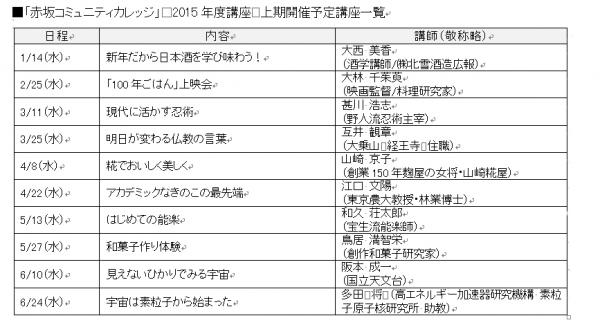名 称:「赤坂コミュニティカレッジ」2015年度講座