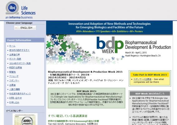 学会:「Biopharmaceutical Development & Production Week 2015-生物医薬品開発生産ウイーク 2015年」