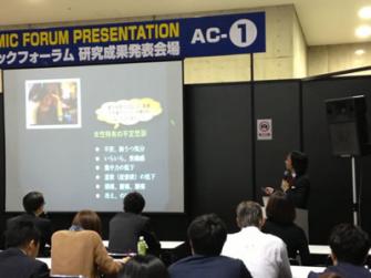 テーマは「若年・更年期女性の不定愁訴及びホルモン低下を改善する、3種単一匂い物質」。ホルモンのアンバランスによって生じるメンタルな問題(月経前緊張症、マタニティーブルー、更年期障害等)を脳機能やホルモン分泌を変えることによって改善する匂い物質について発表いたしました。
