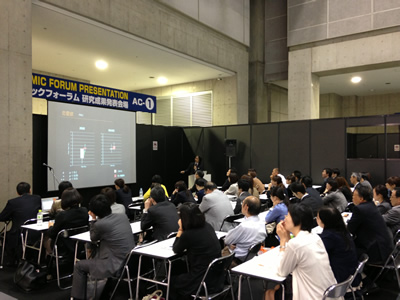 五感に訴える技術を用いた、母子のコミュニケーション支援や母や乳幼児の精神疾患の客観的早期診断法や香りを使った症状の緩和法の開発を行う株式会社マザー&チャイルド(本社:長崎県長崎市 代表取締役:篠原一之/長崎大学医学部教授)は、2014年10月20日(月)に開催された第5回化粧品開発展 COSME Tech 2014(リード エグジビション ジャパン株式会社主催)で学術発表を行いました。化粧品開発展は化粧品の研究・企画開発に特化した国際商談展で、原料・容器メーカー、化粧品メーカー、OEM企業関係者約3万人が来場し、「若年・更年期女性の不定愁訴及びホルモン低下を改善する、3種単一匂い物質」をテーマにした学術発表も100名弱の方々にご参加いただきました。