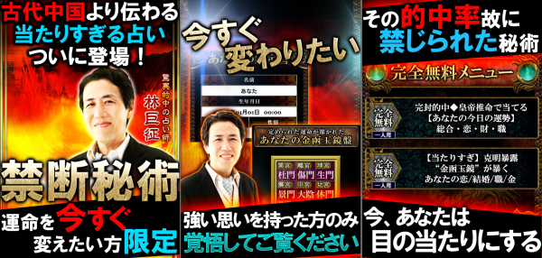 ・アプリ名称:『◆絶対恐怖◆当たりすぎ【奇術占い】金函玉鏡 林巨征』