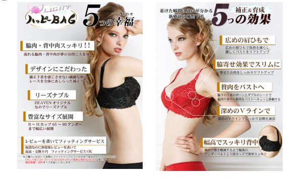 「脇や背中にお肉が流れてバストが小さくなった…」という女性の悩みを解決するために開発した脇肉キャッチャーは、2本のボーンで、流れやすい脇の下や背中の肉をしっかりとカップに収める、補正力の高いブラジャーです。楽天レディースインナー部門でランキング1位(2014年11月12日現在)を獲得しているほか、インナーメーカー51社中、2012年より2年連続で売上伸び率1位を記録(調査:業界紙「マリリンタイムス」)。ユーザーからも「脇も背中もすっきりして背中の段がなくなった」と高評価をいただいています。