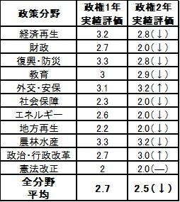 ■安倍政権通信簿は2.5点(5点満点)