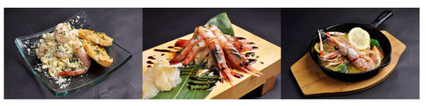 70種類の料理に対して、15種類のオマール海老・ソフトシェルシュリンプ・女性に人気の甘海老・食べ応えがあるボタン海老・手長海老などを使って40種類の海老料理をご用意致しました。タイテイストの料理は全体の4割を占め、残り6割はイタリアンテイストでワインにもビールにも相性抜群です。