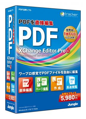 『PDF-XChange』シリーズは、ジャングルが販売権を有する Tracker Software Products Ltd. (カナダ バンクーバー CEO Jurgen Kurz) が開発した PDF ドキュメントの作成・編集・出力が可能なソフトウェア。