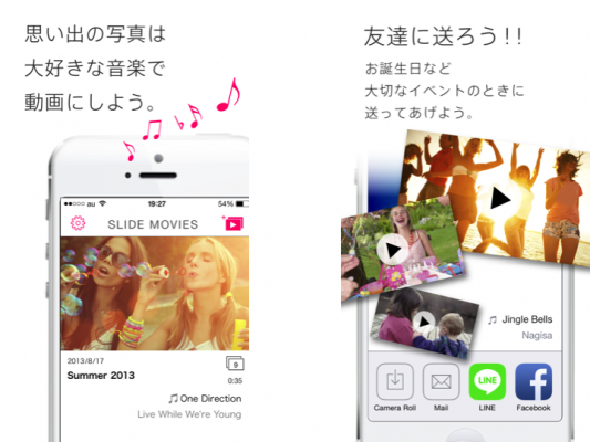 App Store URL:https://itunes.apple.com/jp/app/slide-movies-haokina-yin-lede/id696463126?mt=8
