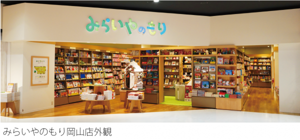 「みらいやのもり」は2013年12月に総合書店「未来屋書店幕張新都心店」(千葉市、イオンモール幕張新都心内)内に初出店。「みらいやのもり岡山店」は総合書店から独立した、初の単独出店です。