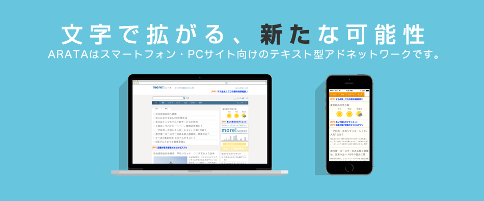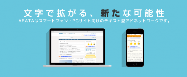 当社は、ARATAのサービスコンセプトである「文字で拡がる、新たな可能性」を通じて、テキスト型アドネットワークの拡大により、広告主・サイト運営者の収益の創出・向上に努めてまいります。