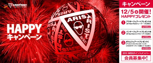 プロレスラー蝶野正洋のオリジナルブランド『アリストトリスト』では、12月5日(金)から12月31日(水)までの期間、【HAPPYキャンペーン】と題して、冬のお得なキャンペーンを開催いたします。